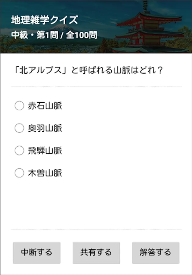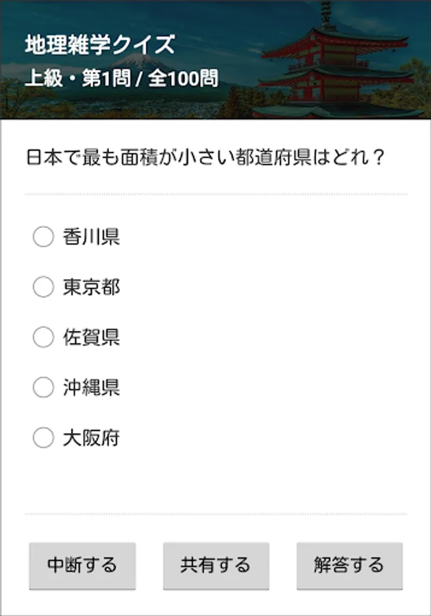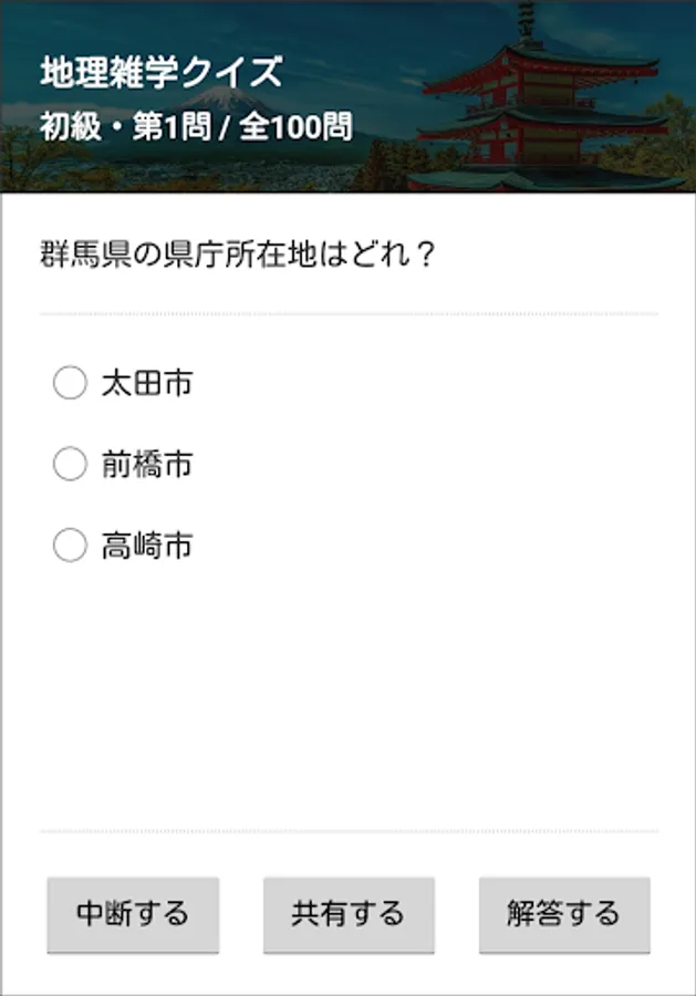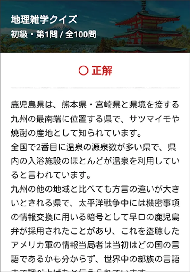 300問超の日本の地理に関するクイズを収録した無料の雑学クイズアプリです。