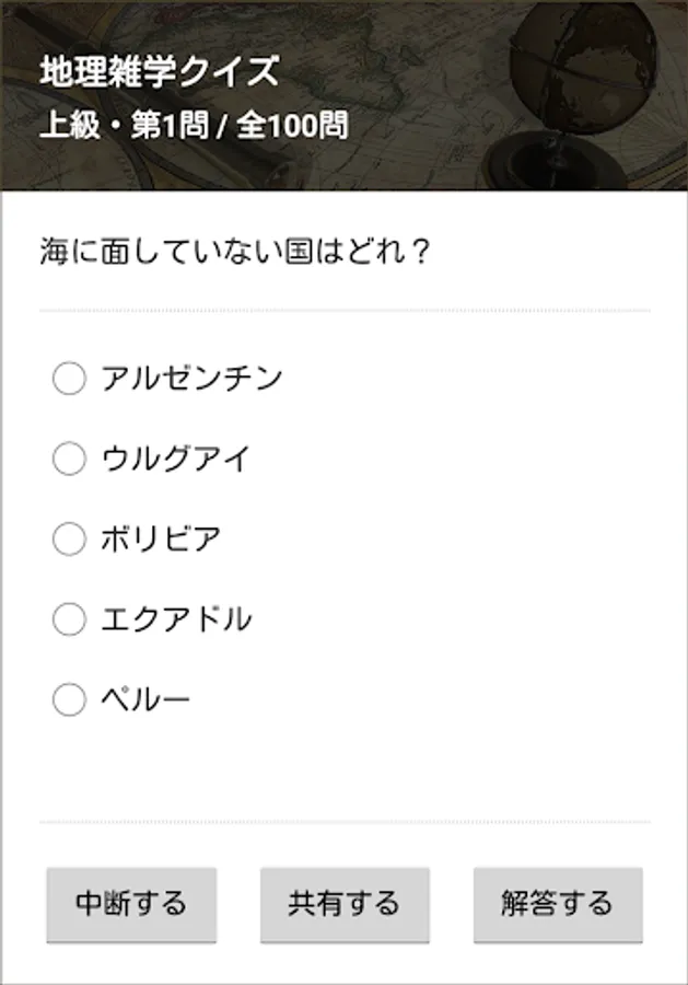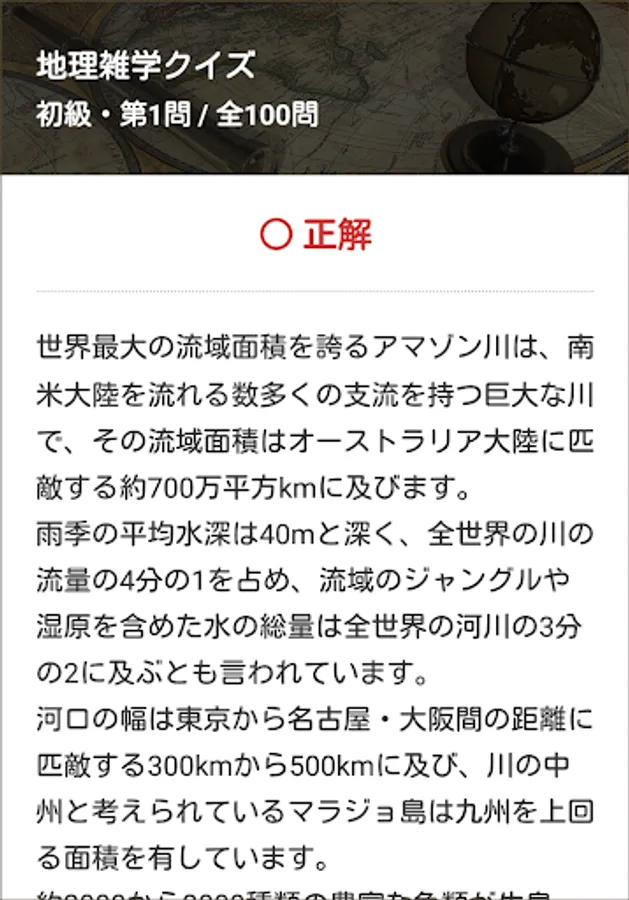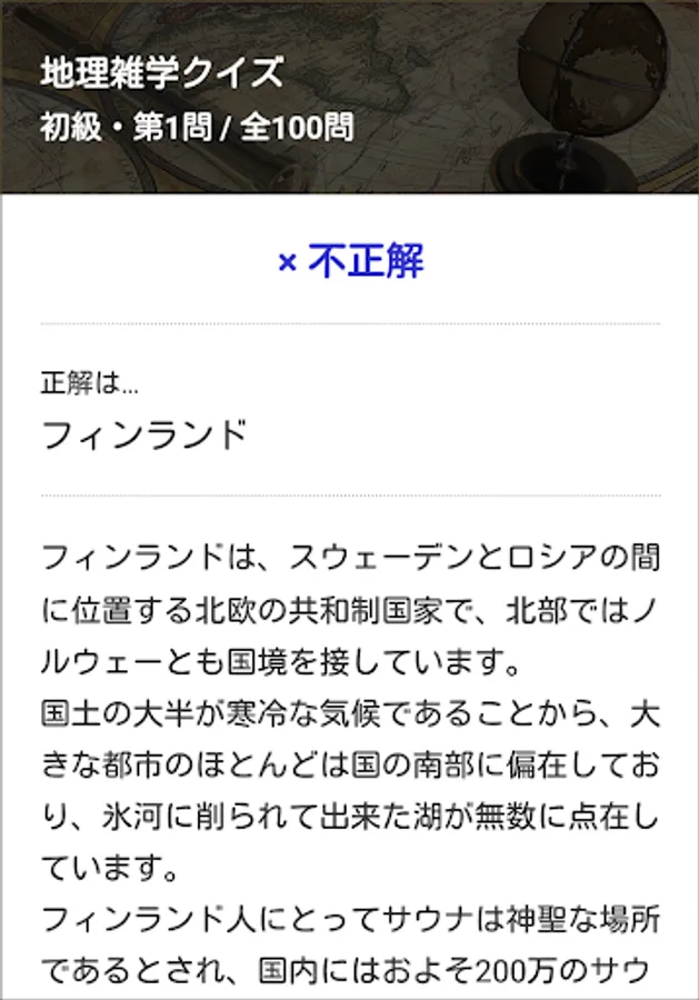 300問超の世界の地理に関するクイズを収録した無料の雑学クイズアプリです。