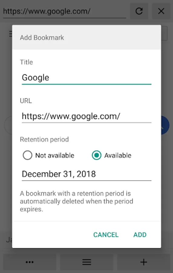 Bookmarks with a retention period are automatically deleted after the period. Therefore, it prevents the situation that a large amount of bookmarks temporarily saved are accumulated.
