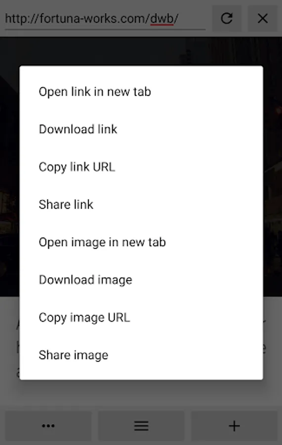 By holding down a link or image for a long time, you can easily share or download links and images.