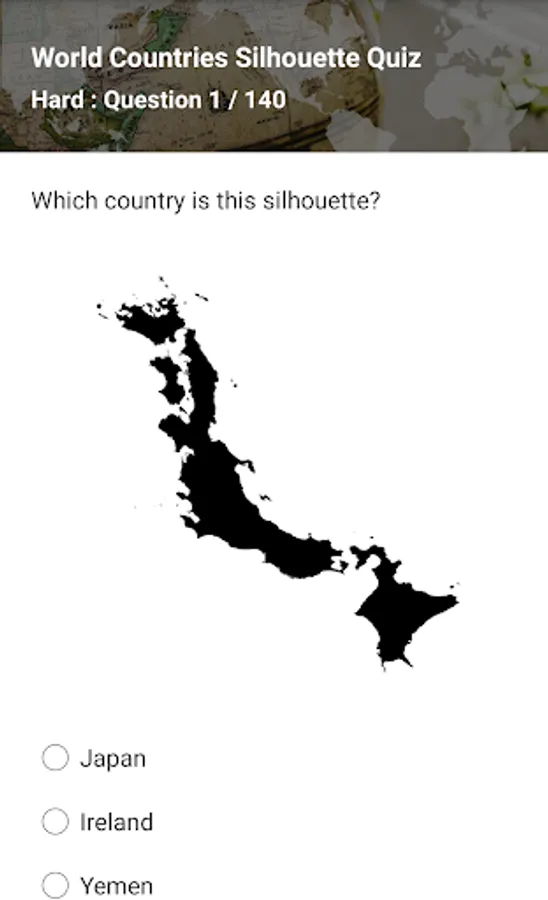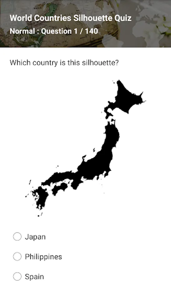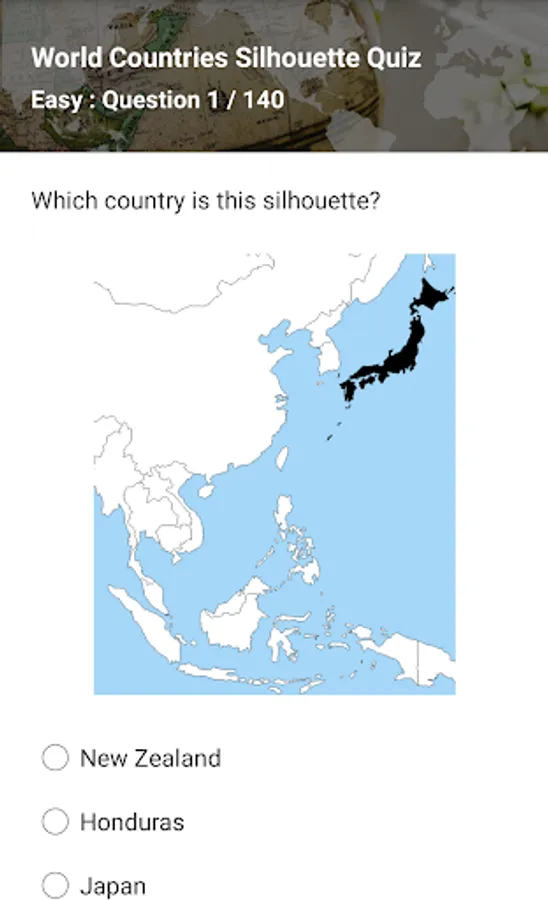 Free silhouette quiz app to guess the shape of the countries of the world.