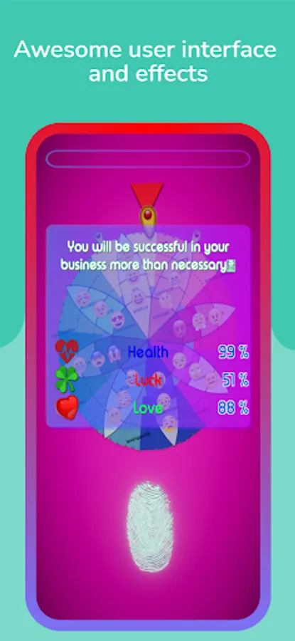 Fingerprint Mood Wheel is a fancy entertainment app to analyze the mood, fortune, luck and health by scanning microfeatures on the finger tip. It is completely free and always will be. There is very rich and awesome user interface with fancy animations and easy controls.