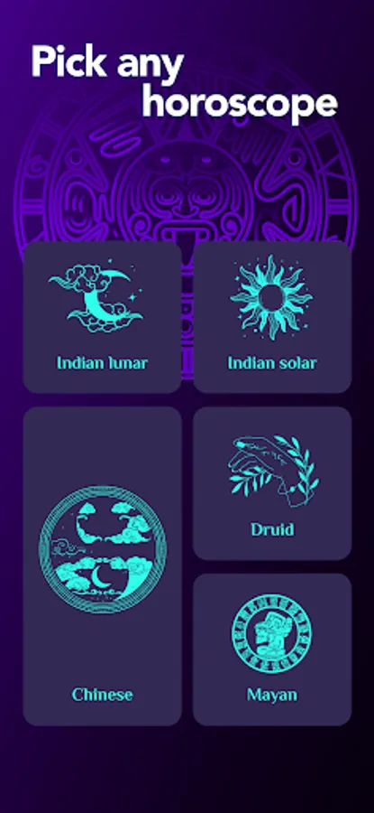Mayan calendar lets you learn your Mayan sign and see what the ancients had to say about your traits. Druid horoscope is for those who are intrigued by fortune telling and mystical powers.