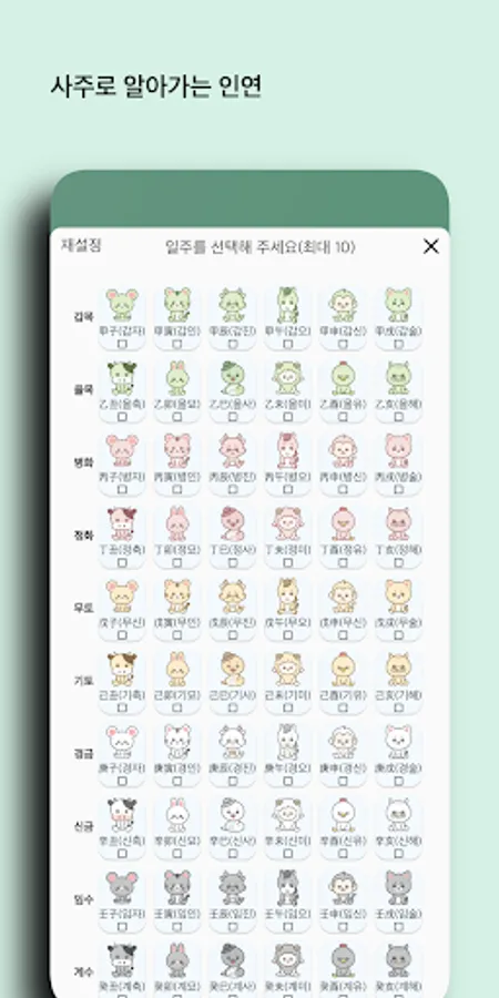 자신의 일주와 상대방의 일주를 검색하여 인연을 찾을 수 있으며 추후 업데이트를 통하여