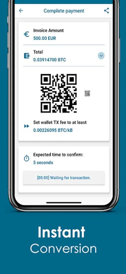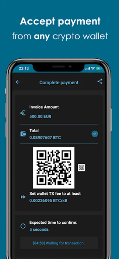 Simple, secure, contactless cryptocurrency payments (app for merchants).