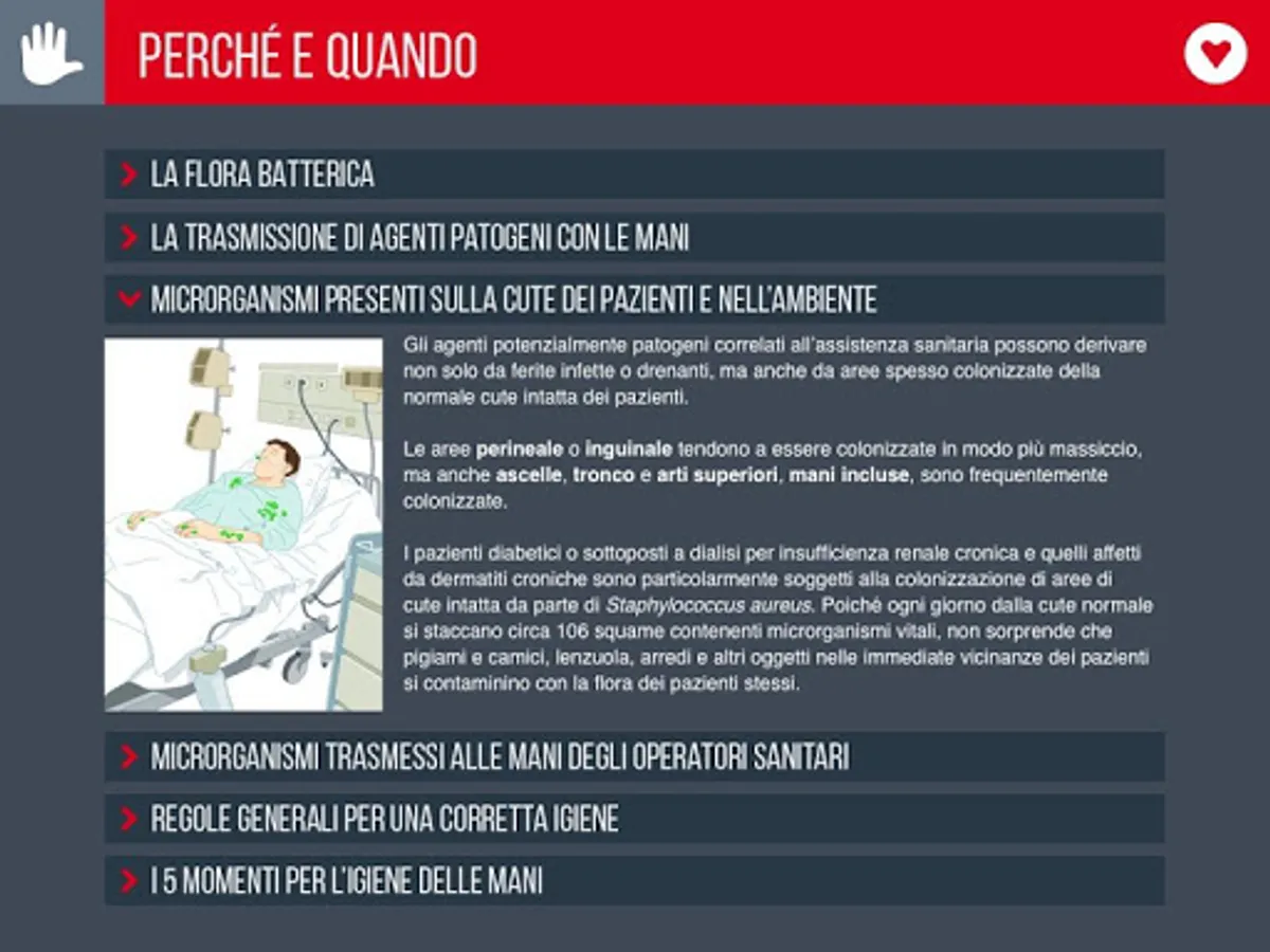 The goal of this App, created in collaboration with the Bambino Gesù in Rome, is to train health care workers about the importance of good hand hygiene practice, the correct mode of execution and compliance occasions, including the proper use of gloves for the prevention and control of infections related to care practices.