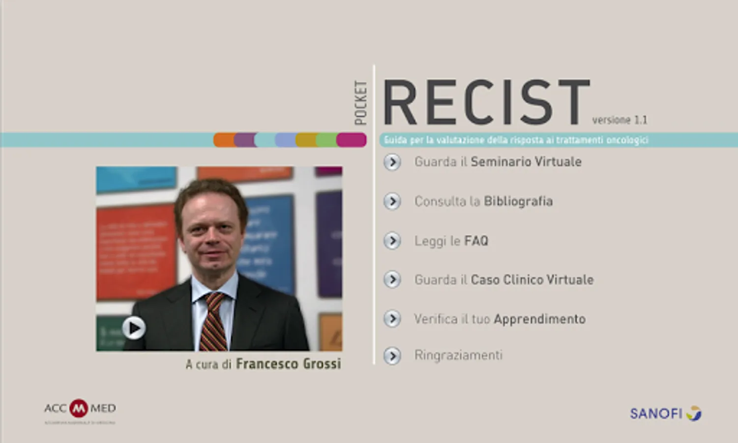 An Overview of RECIST v 1.1, edited by Francesco Grossi, accompanied by practical examples, in-depth bibliography and answers to frequently asked questions