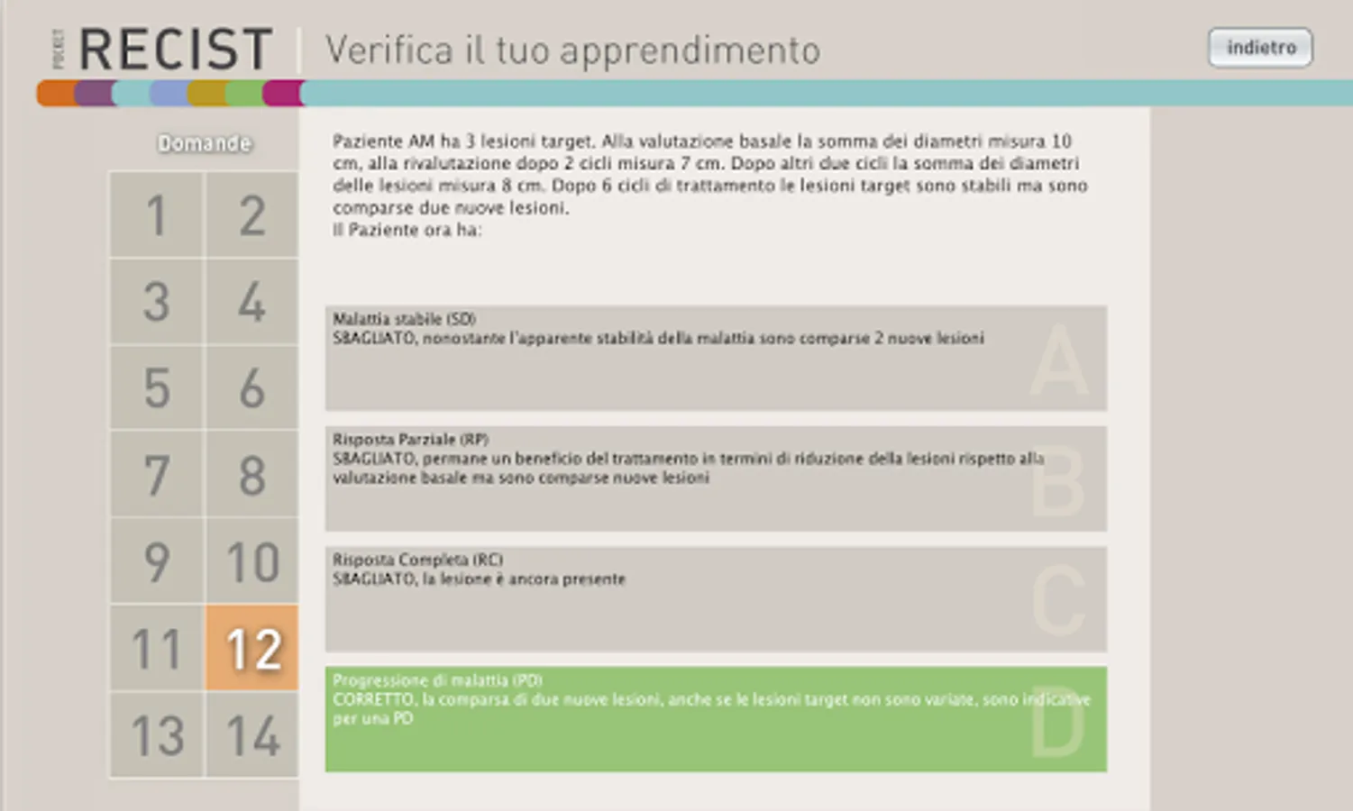 Practical example of application of the RECIST criteria through a complex clinical case.