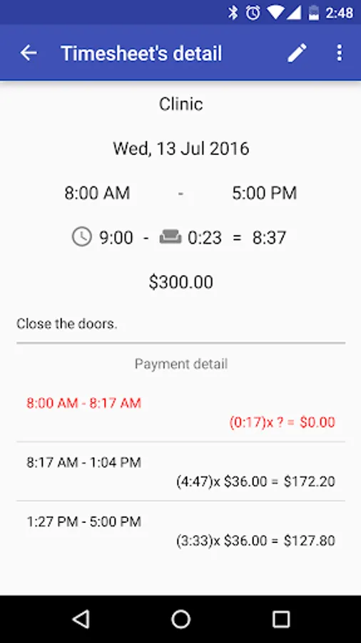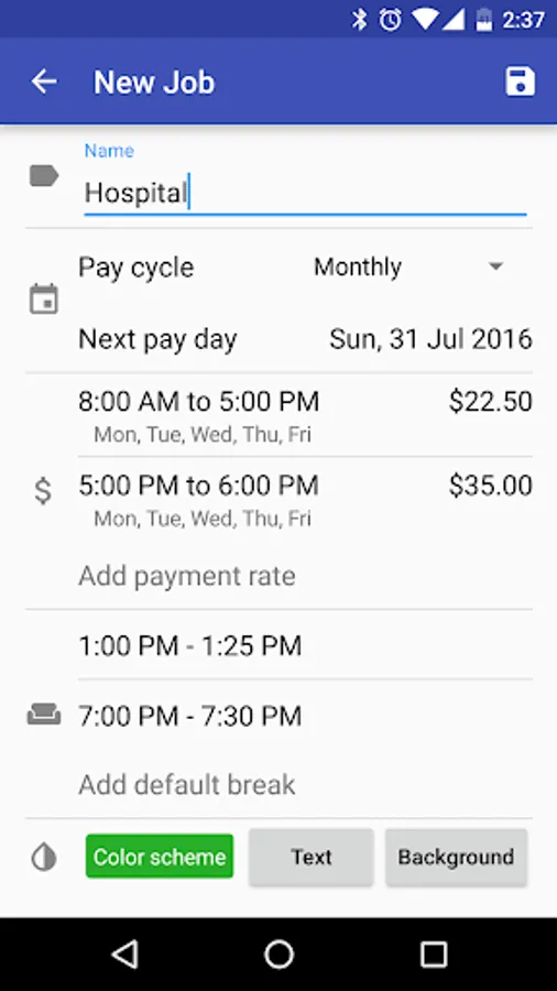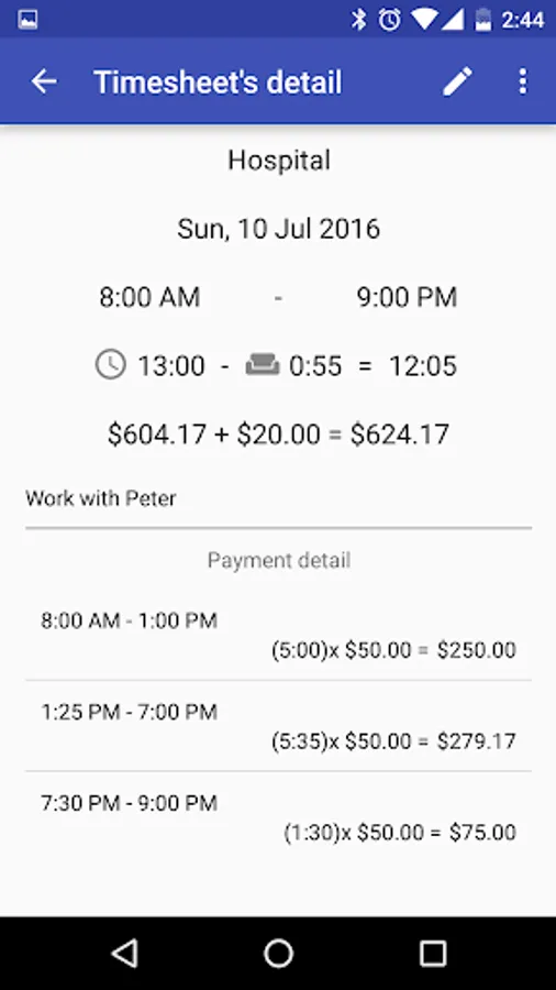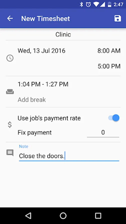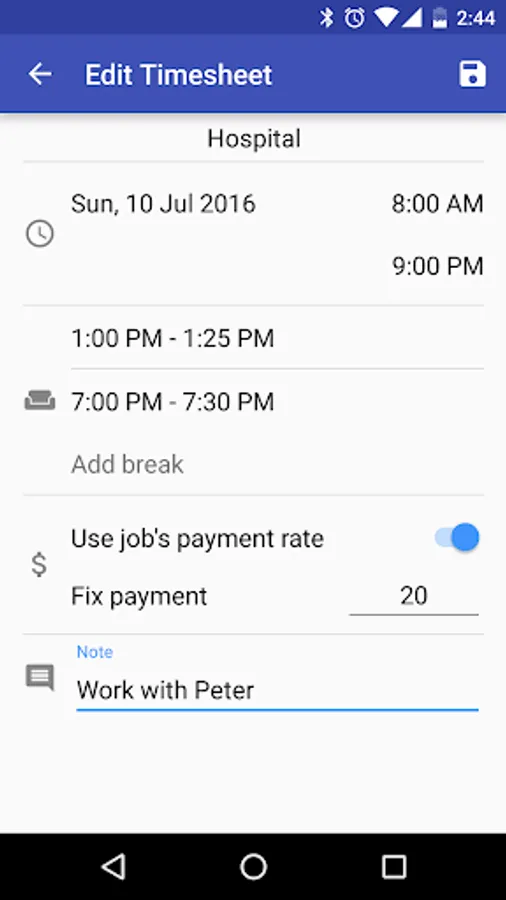 • Use default unpaid breaks from a job or add a new one for each timesheet