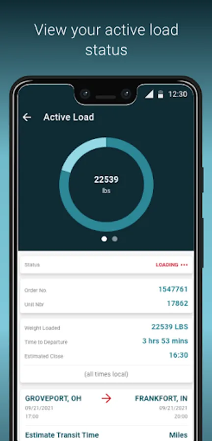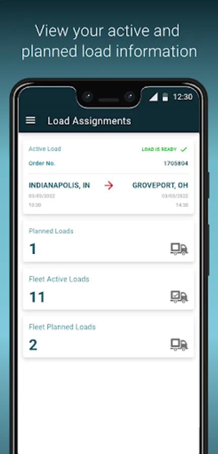 New Dashboard feature allows the user to see the status of their active load. The user will know when it is loading and when the load is ready. Departure and arrival information is also visible.