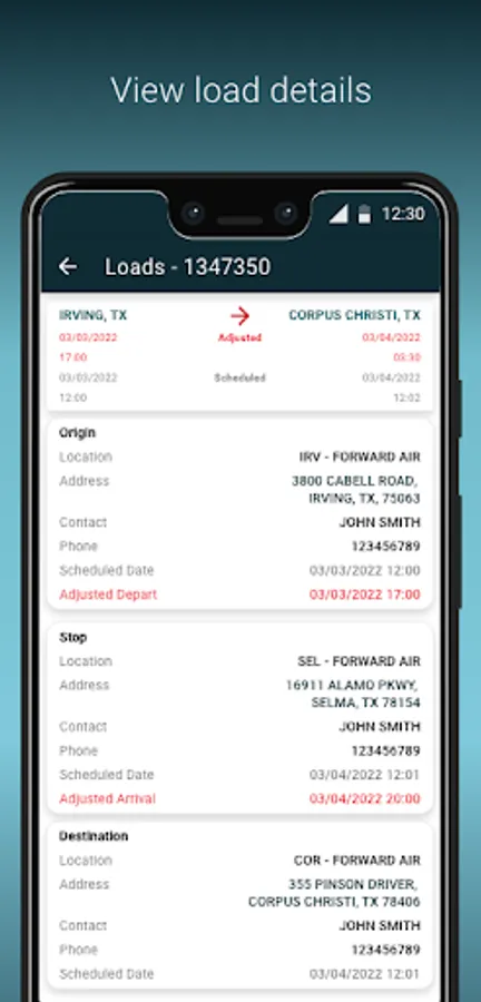 o Visibility to status of all active loads