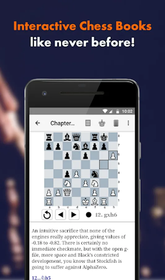 Forward Chess is an interactive chess book reader. Read the book, play through book lines, AND try your OWN lines. The embedded Stockfish engine, one of the strongest chess playing engines on the planet, can be invoked at any time to provide an evaluation of the book’s moves or an evaluation of your own variations. Forward Chess is like having a book, a chessboard, and a powerful analysis tool together right in the palm of your hand!