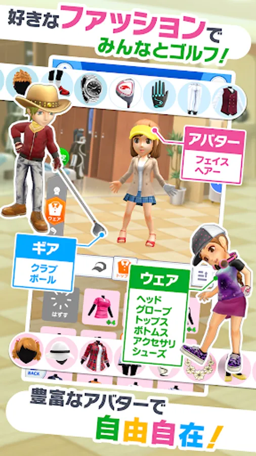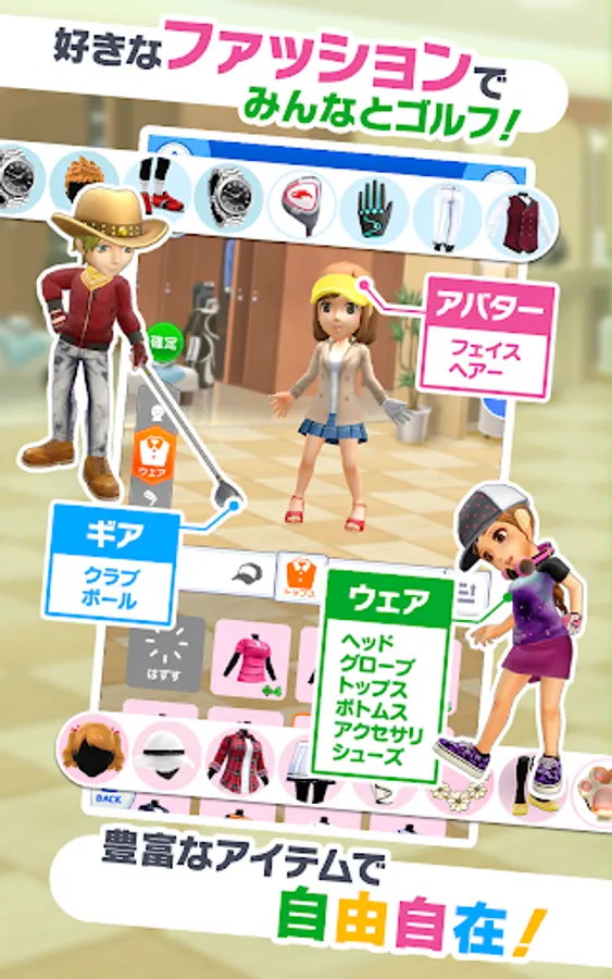 You can customize your character to your liking, not only with clothes and golf clubs, but also with facial features and hairstyles!