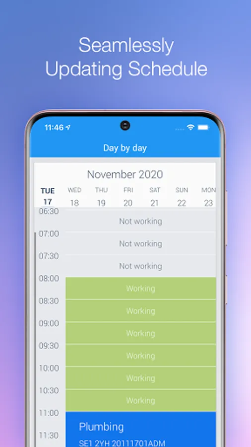 Professionals can easily see their work schedule, upcoming jobs, and detailed job information straight from the app.