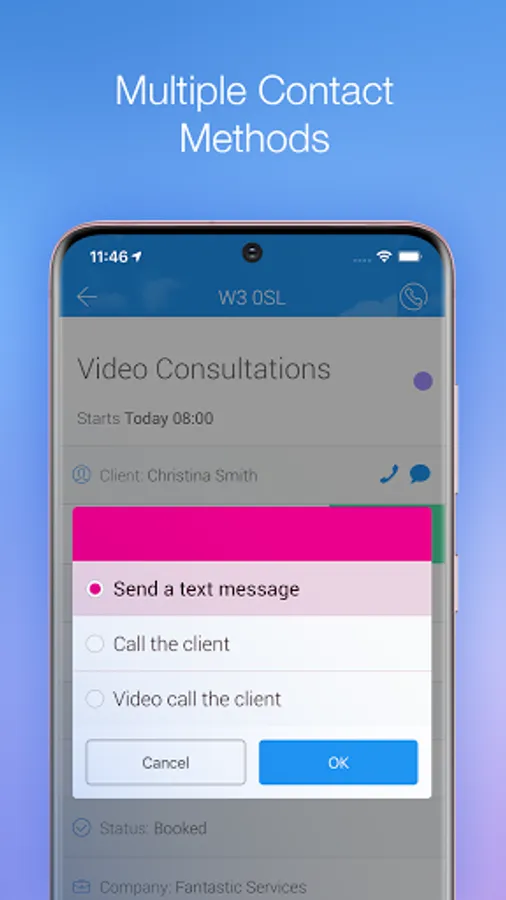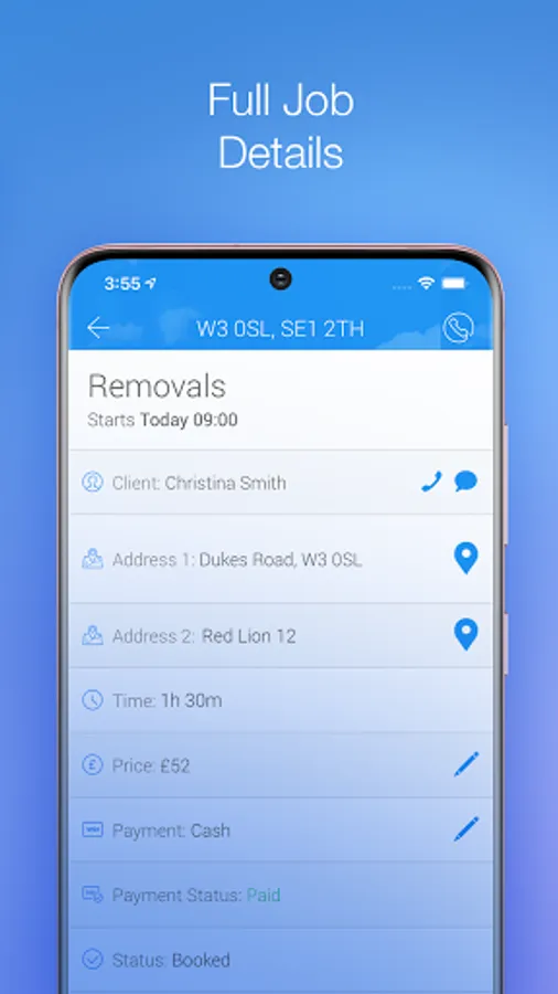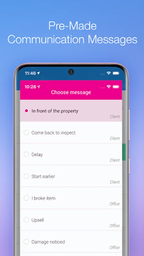 Tradespeople can easily communicate with customers and the HQ through pre-defined messages, allowing seamless communication.