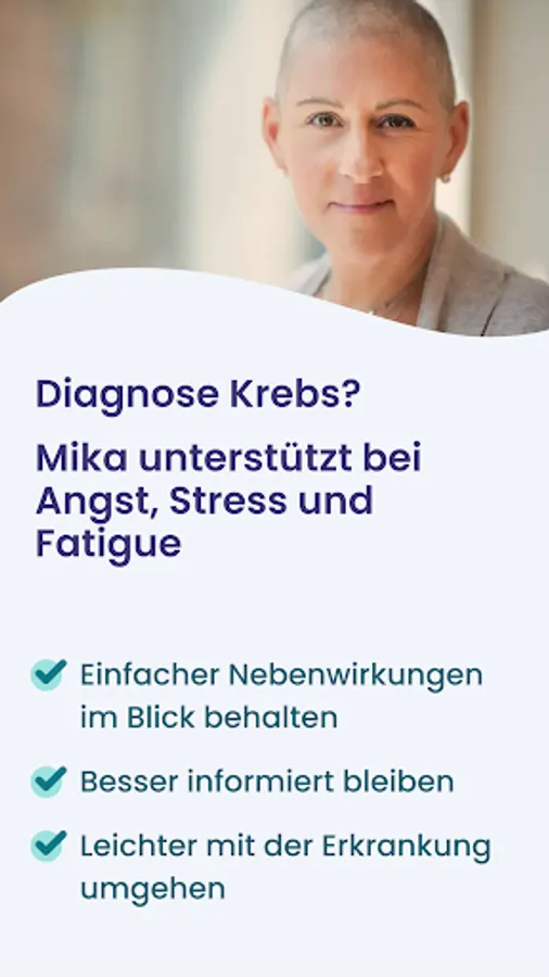 Mika summarizes medical information so that you can better understand your cancer and the treatment. Mika also offers you even more: listening experiences related to mindfulness and relaxation. Tips on exercise and diet for cancer. Videos and exercise training that help you relieve side effects such as fatigue. In addition to doctors from oncology and psychology, our specialist editorial team also includes experts from physiotherapy, nutritional science, social counseling and other disciplines. Mika offers you verified information that you can rely on.