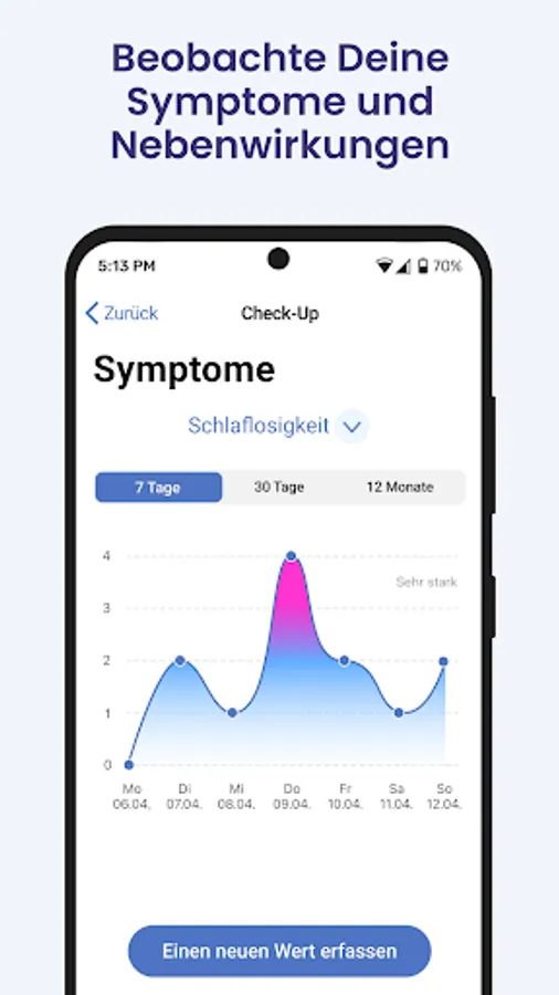 With the health check-up in the cancer app Mika, symptoms and side effects can be easily documented. Regular check-ups make it easier for you to keep track of things and communicate with your treatment team. Mika gives you recommendations and alerts you if there are any abnormalities. This means that important decisions can be made quickly in an emergency.