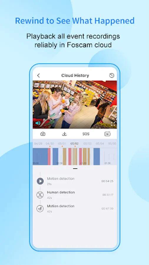 With Foscam Cloud, you can access alert recordings through an intelligent and intuitive timeline. There’s no need for a standalone app – it’s all accessible through Foscam App and myfoscam.com. Whether you upgrade or lose your smartphone, we’ve got you covered – your cloud recordings are safely stored on our military-grade servers for your viewing anytime, anywhere.