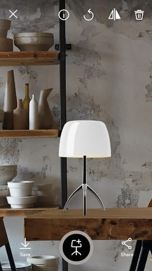 Thanks to the simple user interface, iFoscarini helps you to interact with the catalogue and to insert the lamps of the Foscarini collection, including the latest new models, in the space around you, or in the settings supplied by Foscarini.