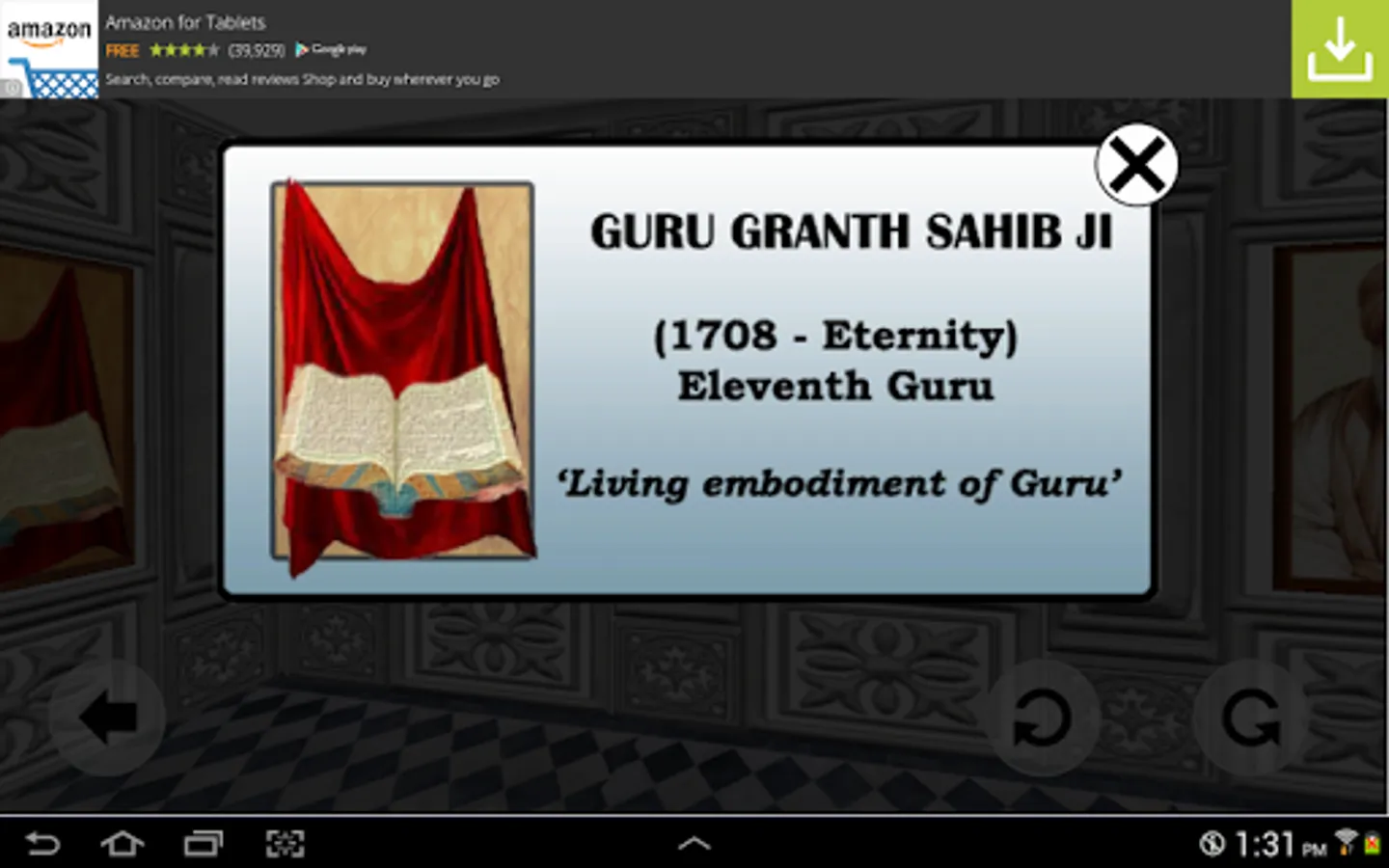 This app is a 3D depiction of Sri Darbar Sahib or Golden Temple in Amritsar. Walk around and inside the temple and enjoy the serenity and ambiance along with kirtan.