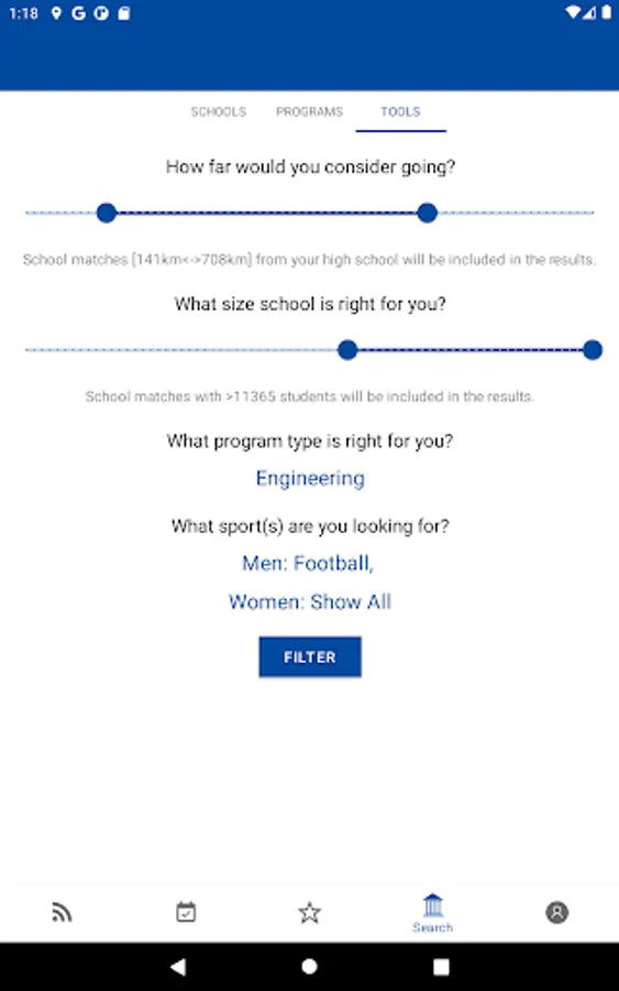 With reduced options to visit schools and university fairs, we've brought the research to your phone! Discover schools, programs, admissions requirements, clubs & athletics, campus life and more - all in one place. Reduce the complexity of your research your options in a structured, searchable format. You can save your favourites, take notes and discover events related to schools and programs. Fosterway provides all the tools you need to discover the school and program choices that are the right fit for you!