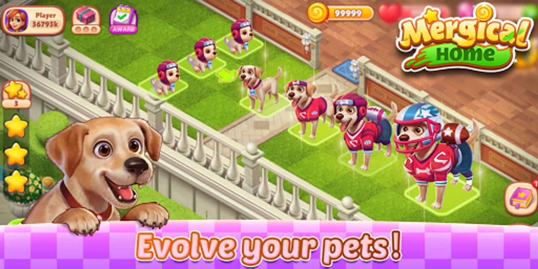 Merge to unlock different types of small animals, each specie of critters will bring you a completely different experience while making your mansion more colorful and fun.