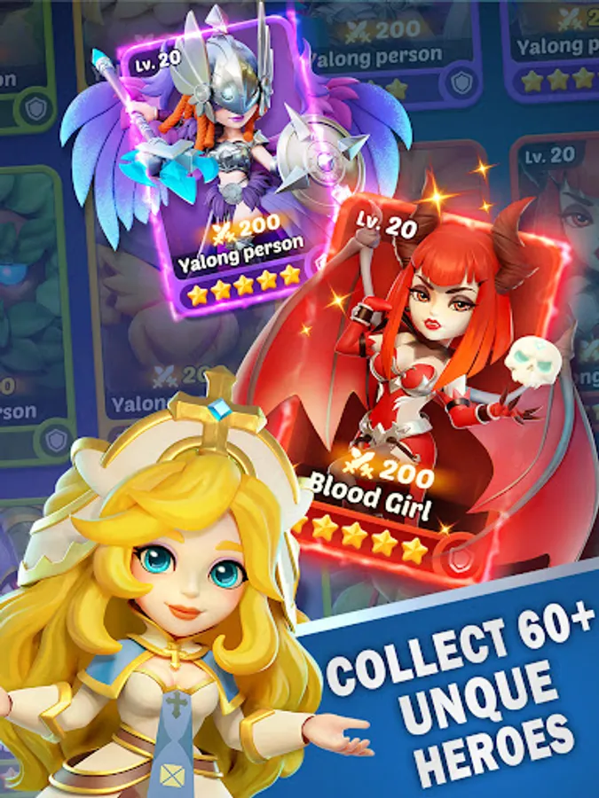 Compelling puzzle-style RPG game. Move your heroes around the battlefield, build barricades to protect your units, and merge multiple heroes together to transform them into more powerful forms!