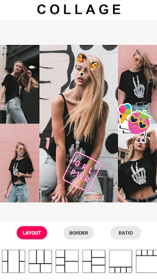 Add from hundreds of emoji or stickers with funny, cute and girly themes. Make your photo more expressive!