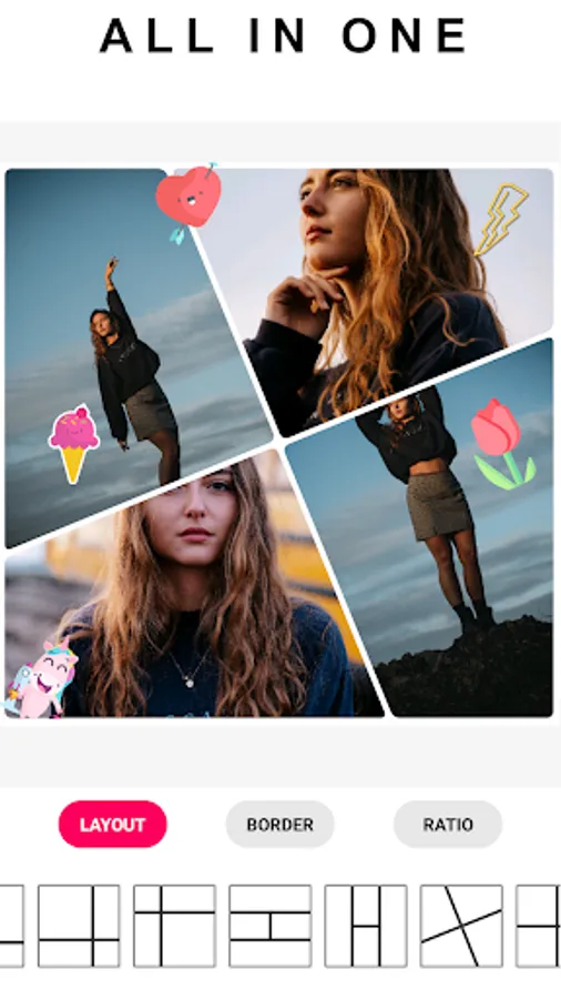 Many layouts you can select to make unique collages such as balloon, star, heart, diamond, circle photo, etc