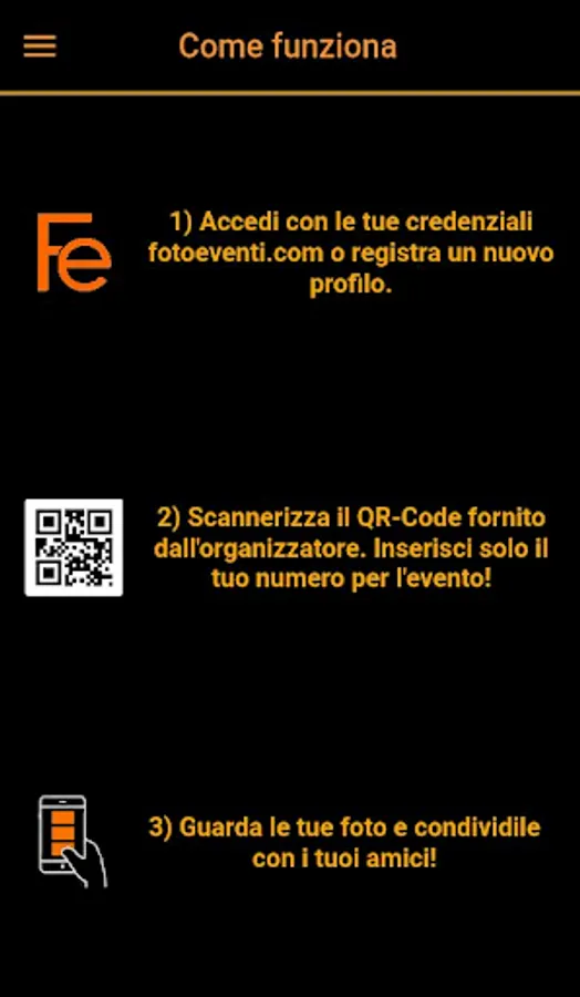 The Fotoeventi.com official app that lets you watch all your photos directly on your smartphone, just by scanning a QR-Code, in all the events covered by the application.