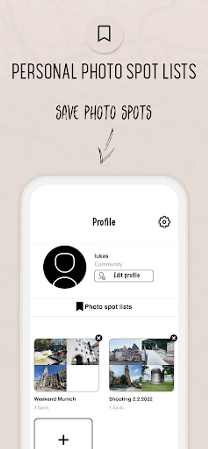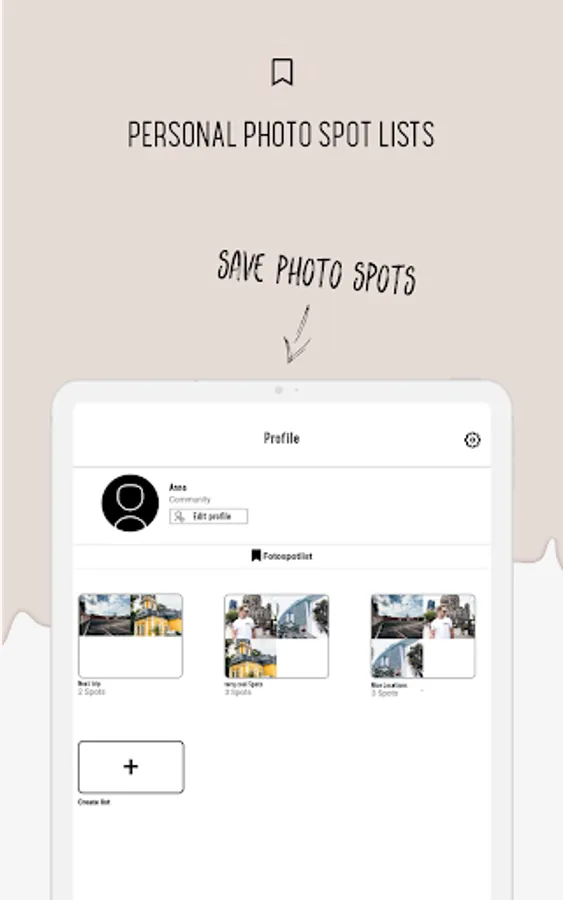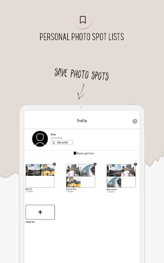 Individual photo spot lists > Save your favorite photo spots in your customized lists!