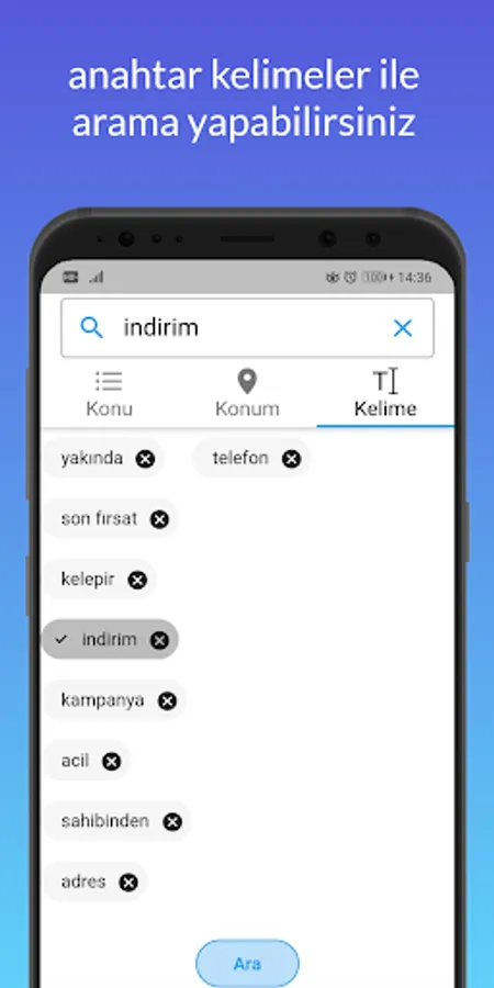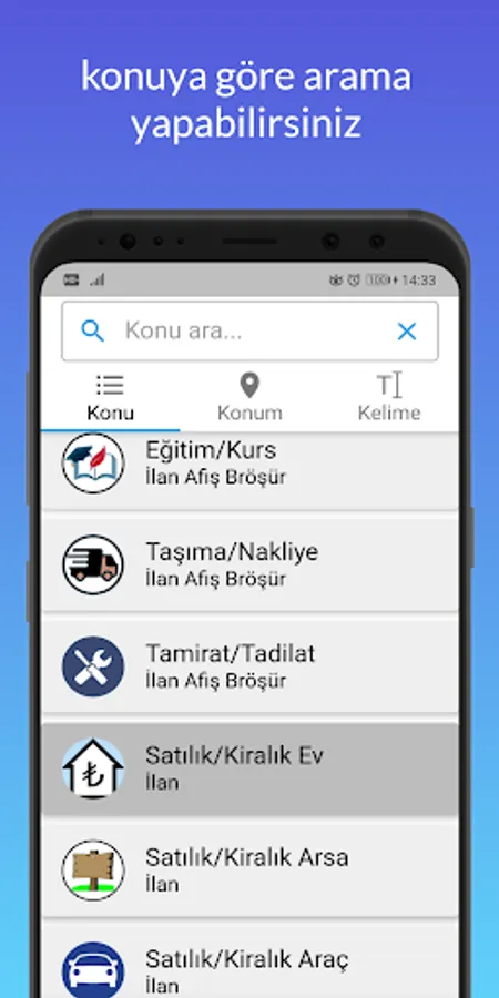 You can search ads by subject, location or using keywords.