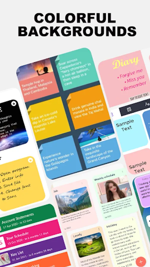 Set reminders for your notes, and the free notepad app, Notepad Notes, Handy Memo, will ensure you never miss an important deadline or event.