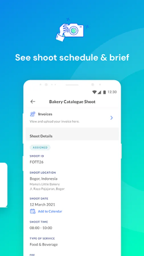 Get a hold of your shoots and assignments easily in your mobile device. You can check your schedules, shoot details, as well as upload shoot-related invoices through this app.