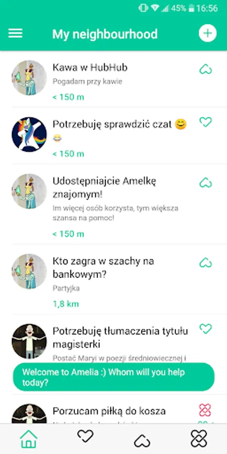 Do you have an idea how to do something good for your local community? Add an advertisement in Amelia! Use Amelia to organize a group of cool people. Get to know each other and change your surroundings together!