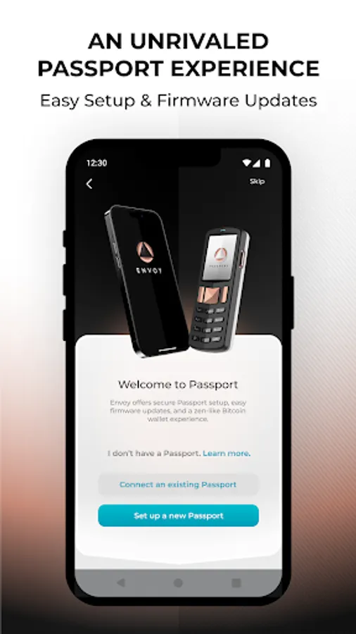Use Envoy alongside your Passport hardware wallet for setup, firmware updates, and more.