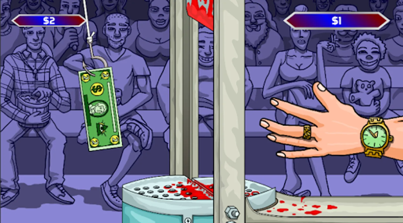 In Handless Millionaire 3, you're in a game show and with the chance to become a multi-millionaire. All you need to do is grab the money. Sounds easy, right? To grab the money, just stick your hands between a razor sharp guillotine. You need to be quick to grab the cash and get your hand back before it chomps down. Don’t be fooled. This money grab game is not easy. You need to be fast or you will be a handless millionaire!
