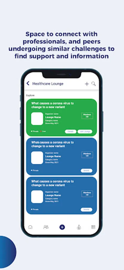 Healthcare Lounge: Space to connect with mental health professionals (psychologists, therapists, licensed mental health counselors etc), peers undergoing similar challenges to find resources, support, and mental health information related to symptoms & treatments.