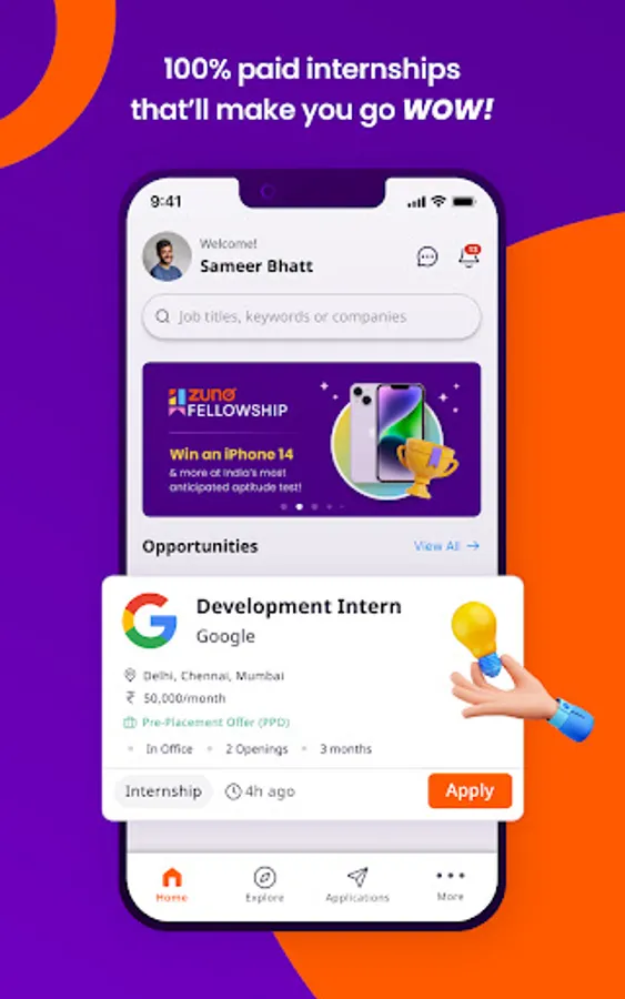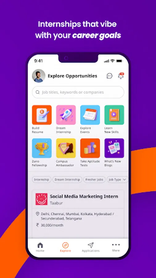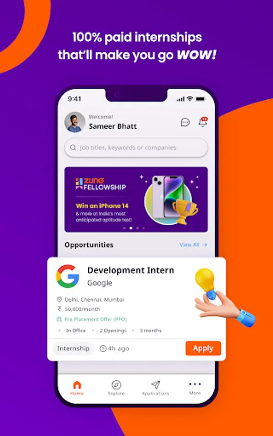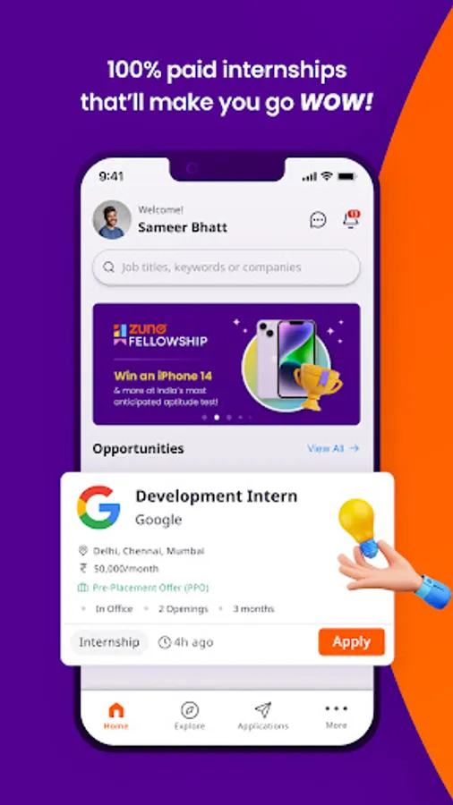 With Zuno’s new app, access all types of internships and fresher jobs across multiple industries and the function of your choice. We bring you all kinds of opportunities, including work from home roles!