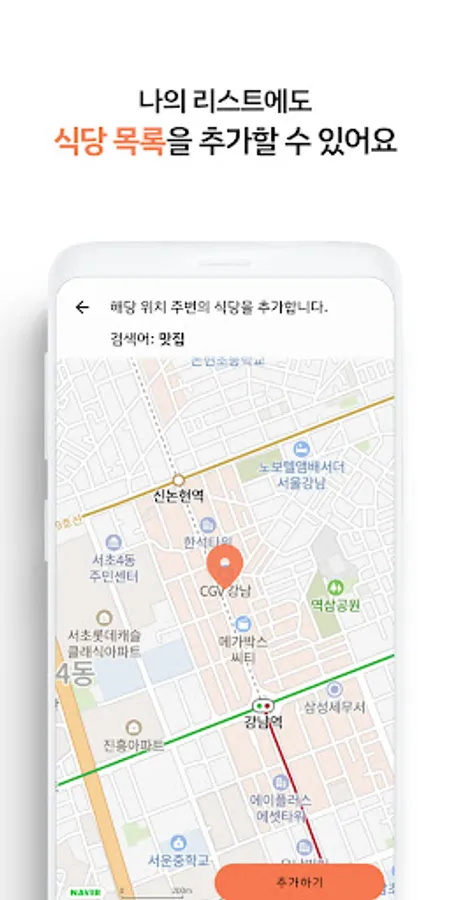 Create your own list by entering restaurants or food near your home, school, or work. You can bring up a list of nearby restaurants in a specific location and add it to the list. You can also set the search radius when bringing up the restaurant list.