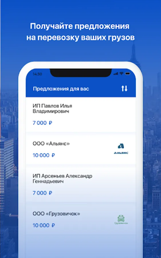 The application allows you to get new customers for a company of any size, as well as order transportation for yourself.