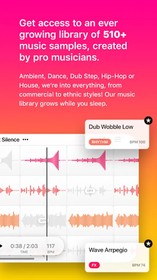 • Access to an ever growing library of (currently) 510+ premium music samples