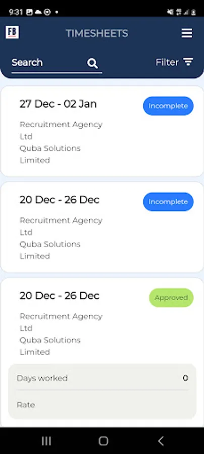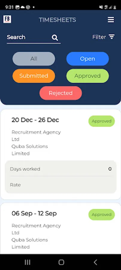 Allows Four Blue's clients to submit and approve timesheets conveniently from their mobile device. Candidates can submit units of work, Clients approve/reject with notification