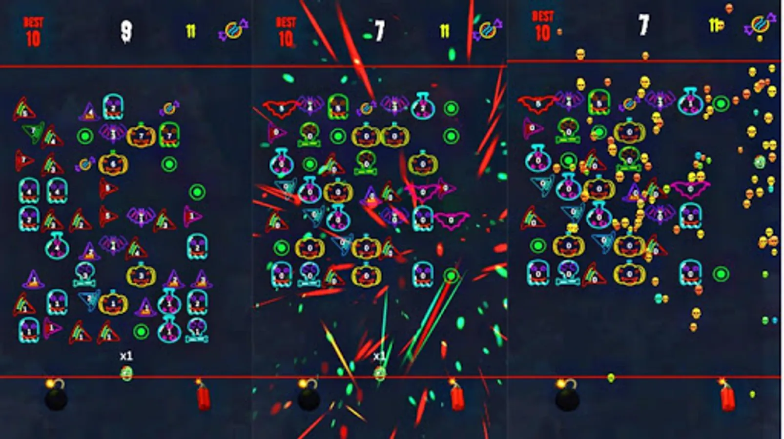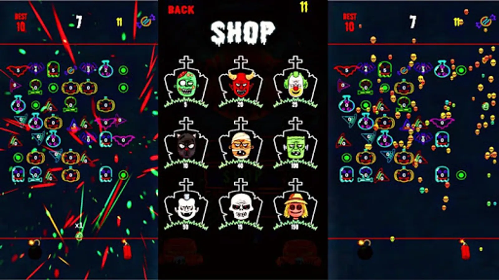 Solve the Halloween puzzles shooting game and collect candies to unlock monster skins like vampire, zombie, Frankenstein, mummy, and many other horror ball skulls.