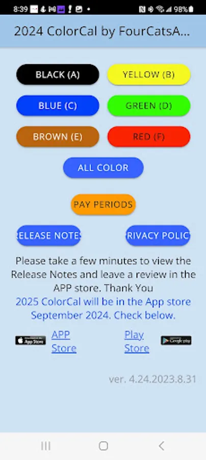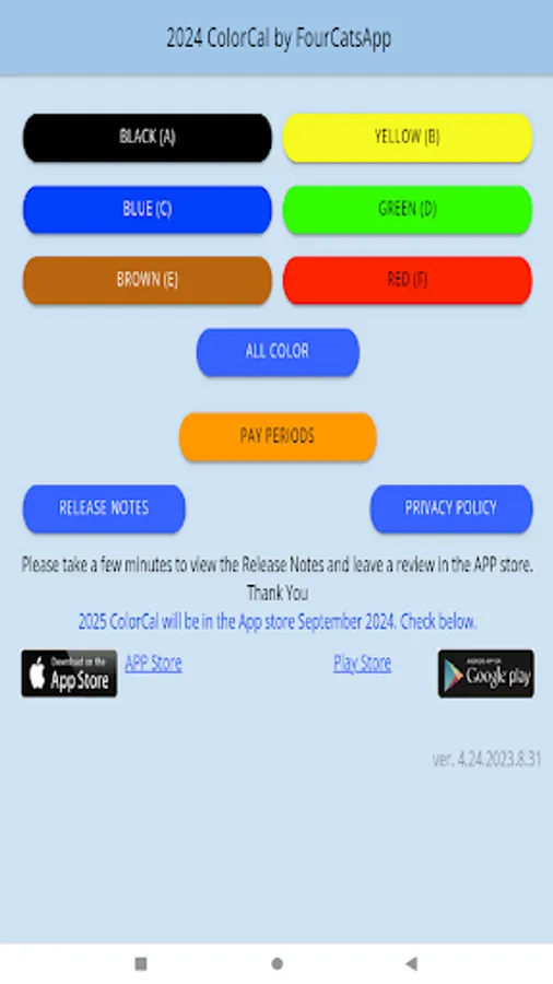 This calendar covers a very commonly used Color/Alpha scheme. If your Color/Alpha scheme does not match the App, please be patient, I am working on an App with generic colors.