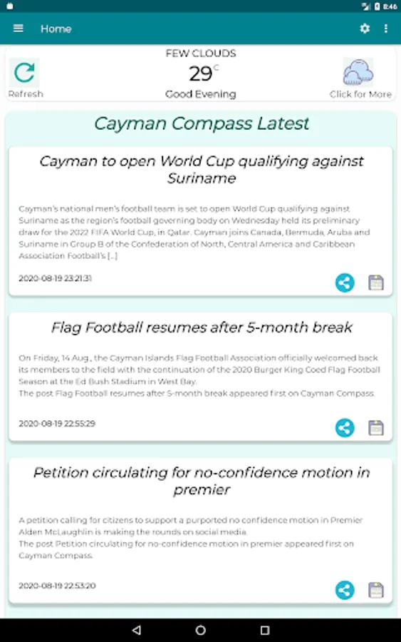 Cayman News tool app is here. This app is to save you time by combining the news articles from multiple sources into one convenient place for viewing. No longer will you have to go onto each page individually.