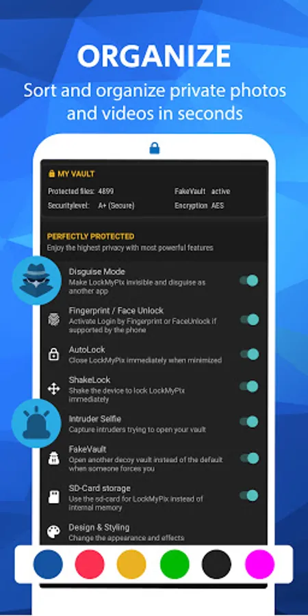Hide the app: Hide the original app icon. LockMyPix will look like another app and only you know the secret.