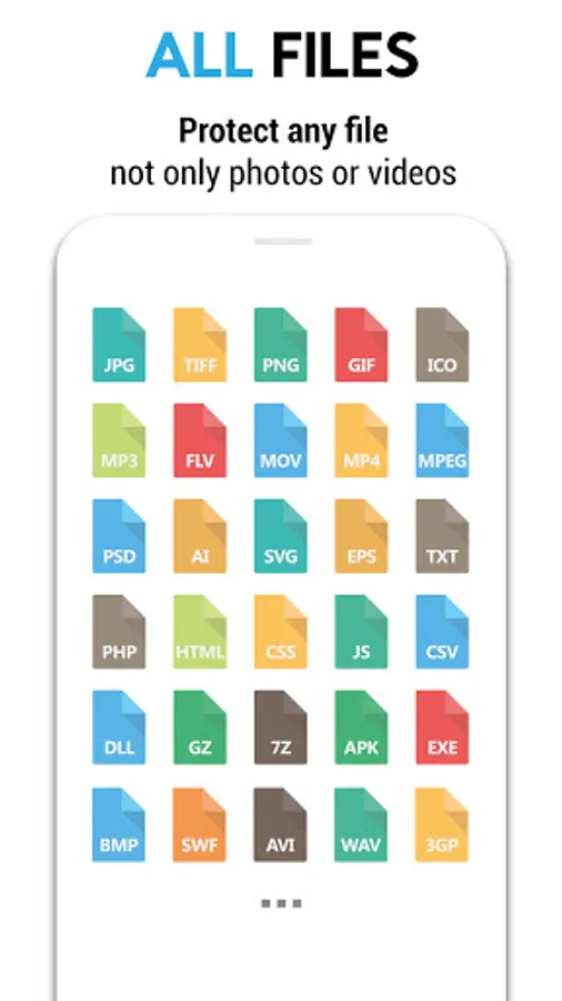 Files that you import to Privary are fully hidden and securely locked with your private password, pin or fingerprint. Nobody except you can see your hidden files!