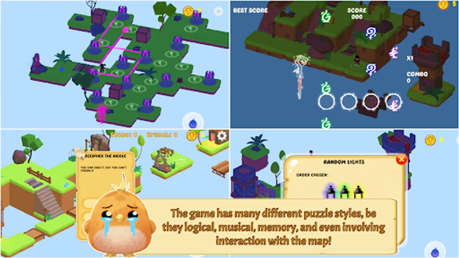 Inspired by lowpoly, anime and isometric style with fantasy elements, optical illusions and multiple levels to explore and multiple types of puzzles to solve.