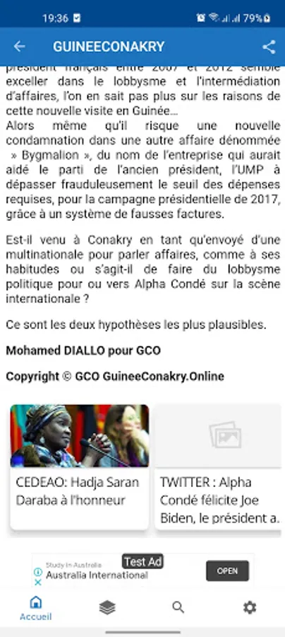GuineeConakry.online is an online information journal produced by the company Justin Morel Junior Communication Sarl. Reference: FORM N °. RCCM / GC-KAL / 021.897 / 2008 - RCCM ENTREP./RCCM/GC/-KAL/020.471B/2008 - BP 742 Phone: (+224) 656 30 30 30 // 662 5251 72 // 654 58 08 80 Email : jmj@justinmorel.info Headquarters: Kipé Dadia, Conakry - Republic of Guinea Site created on Sunday February 18, 2018. Guinea on the Net